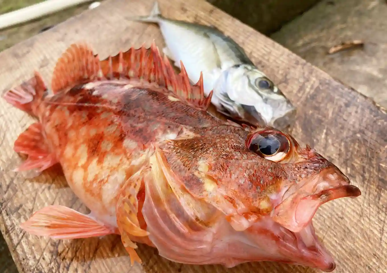釣れたのは、美味しい根魚の代表格、カサゴ。